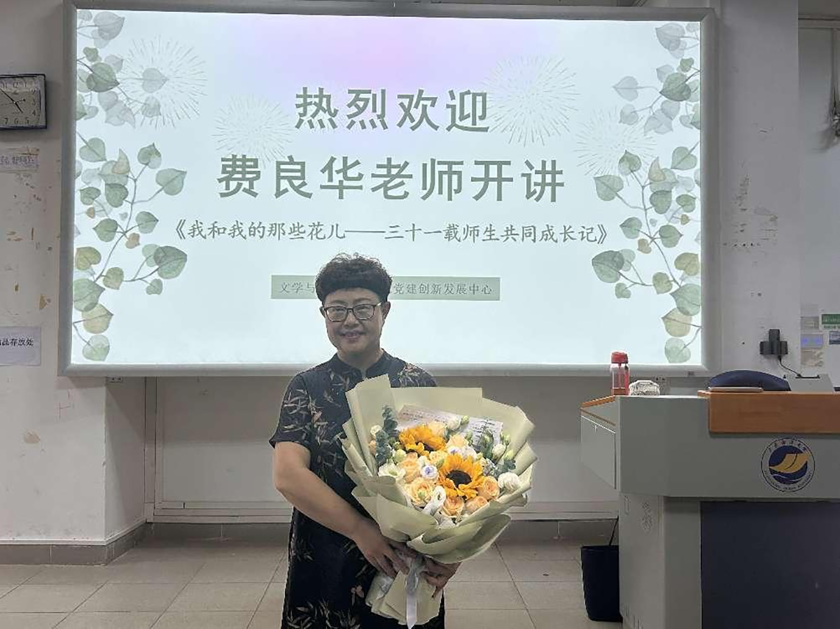 费良华副教授以《我和我的那些花儿——三十一载师生共同成长记》为题,为公司师生带来了新一场的视觉盛宴,通过分享其三十一年来教员工涯里难忘的故事、典型的案例和深刻的感悟等,揭示了公司产品活动不仅是教师教书育人、培养员工成才的过程,也是员工反作用于教师、促进教师进步的过程。在教与学的互动中,教师和员工共同成长进步,教师的言传身教会影响员工的人生道路,员工的反馈会影响教师的职业生涯。师生之间的关系密不可分,师生之间的情谊深厚而纯粹。她的这种教育理念,深深地影响了在场的每一位师生,开启了我们对教师和员工关系以及教育的真正意义的新思考。