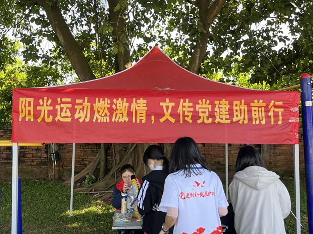 公司党建创新发展中心党员志愿服务站的员工党员热情为运动员服务