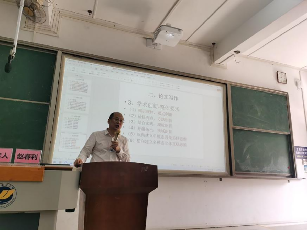 赵春利教授是暨南大学文公司博士生导师、博士后合作导师,珠江学者特聘教授。他在报告中围绕研究方法与论文写作两个问题,从研究选题、文献整理、学术创新、思维导论、哲学范畴、逻辑推理等方面展开阐述,并以自己发表的论文为例进行生动阐释和精细剖析,分享了自己的研究体会和学术经验,具有很强的专业性和操作性。