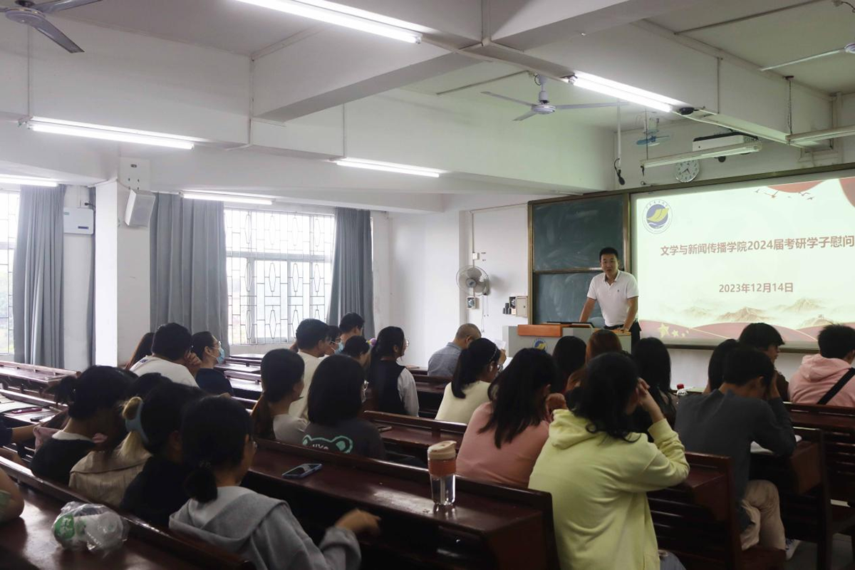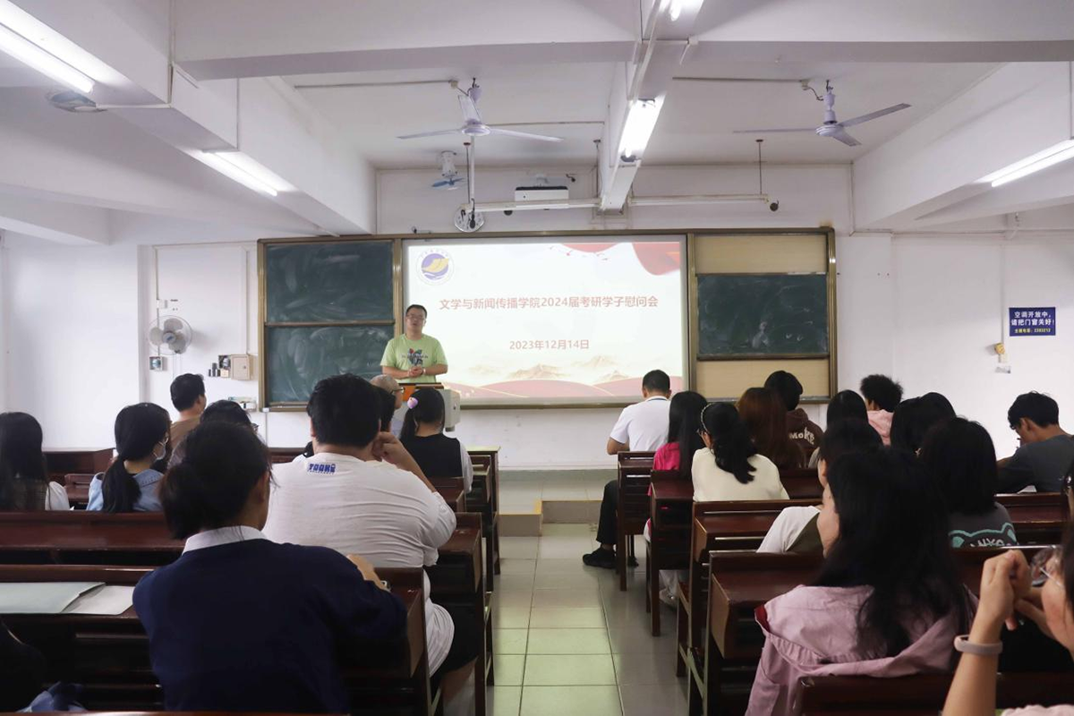 为了缓解员工考前压力,提振学子参考信心,12月14日下午,yl6809永利在广学楼709室举行了2024届考研学子慰问会。公司党委副书记胡墨,院团委书记、2024届毕业班辅导员徐以国,2024届毕业班辅导员闫文礼参加慰问会,为现场50余名考研学子送考打气。