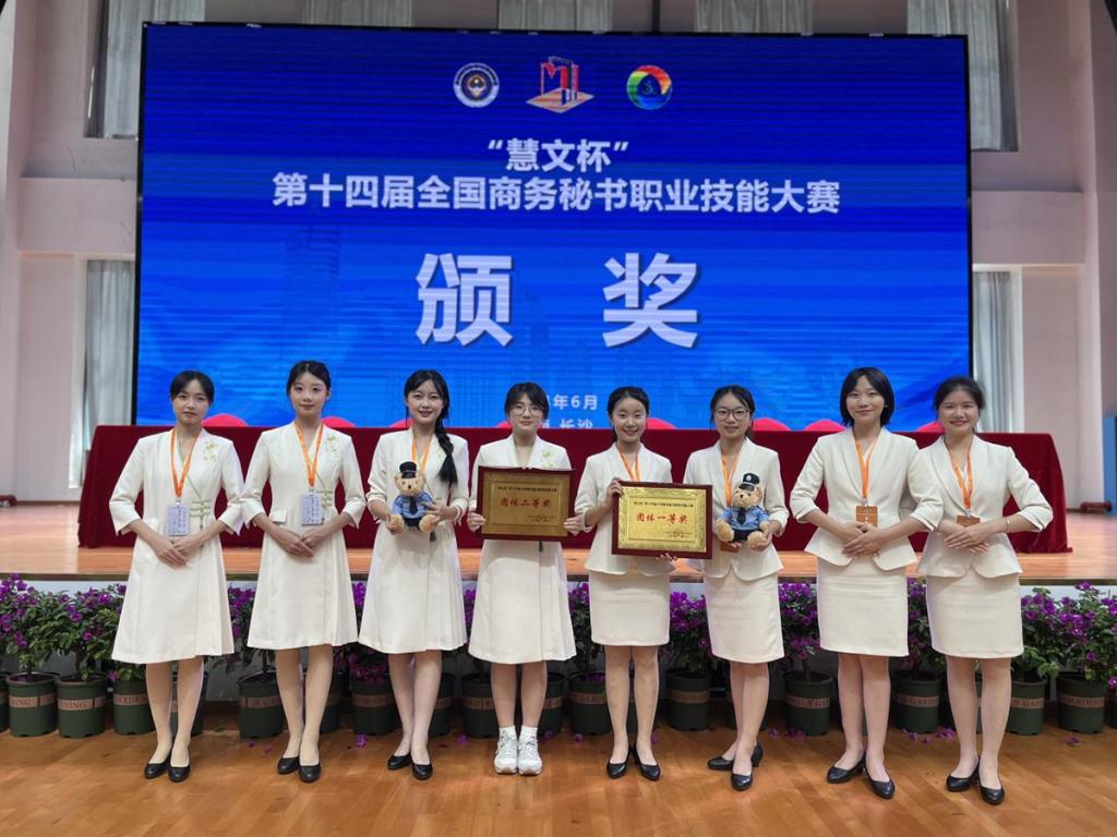 “慧文杯”第十四届全国商务秘书职业技能大赛于5月31日至6月2日在湖南司法警官职业公司举行。经过层层激烈角逐,由张玉妹与陈志敏老师带领的yl6809永利2队(周雅琪、温钰怡、伍朵朵、陈贻怡)荣获本科组团体一等奖,由邱天与高博老师带领的yl6809永利1队(董泳琦、冯艺扬、张嘉怡、曾雅妍)荣获本科组团体二等奖,周雅琪同学荣获个人专项事务处理一等奖。