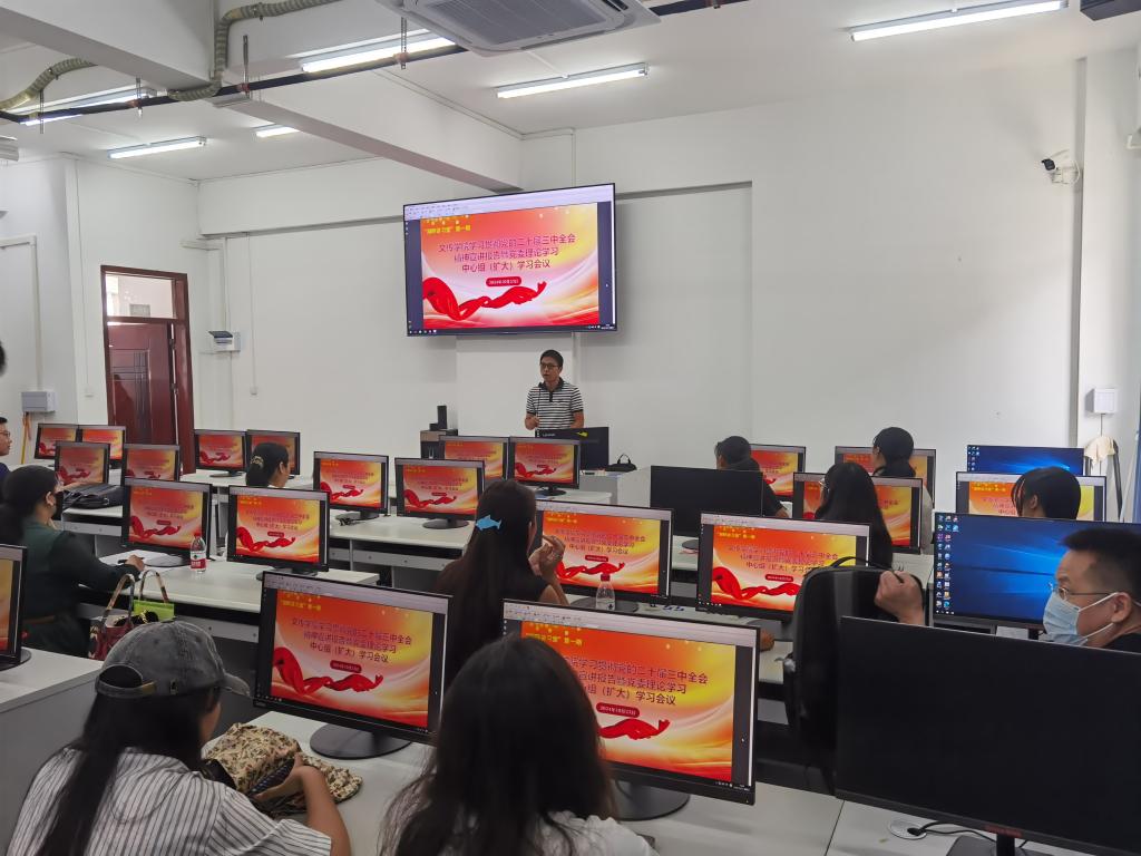 10月23日下午,yl6809永利在新文科楼3号楼405室举行学习贯彻党的二十届三中全会精神宣讲报告暨党委理论学习中心组(扩大)学习会议,这也是公司“湖畔讲习堂”开展的首期活动。公司党委书记张艳梅主持会议。公司全体教职工及部分青年员工骨干等近80人参加学习。