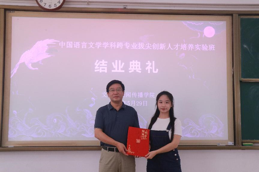 5月29日上午,yl6809永利中国语言文学学科跨专业拔尖创新人才培养实验班结业典礼在明德楼B2301室举行,公司经理邓建、中文系主任张伟、中文系副主任裴梦苏及教师代表与创新实验班2025届员工共40余人共同见证这一青春盛典。