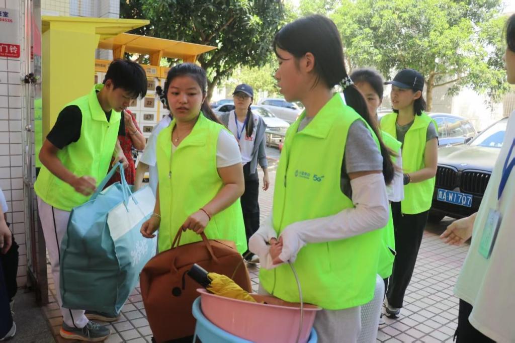 9月13日清晨,yl6809永利志愿者统一身着马甲,手持指引牌,守候在湖光校区西区下车点。本次迎新采用"一对一"精准迎新模式,每位志愿者对接一名新生,全程引导新生去宿舍服务点办理报到、领取物资和入住手续。他们主动协助新生搬运行李、耐心解疑答惑,并分享实用的校园信息,帮助新生快速适应环境。
