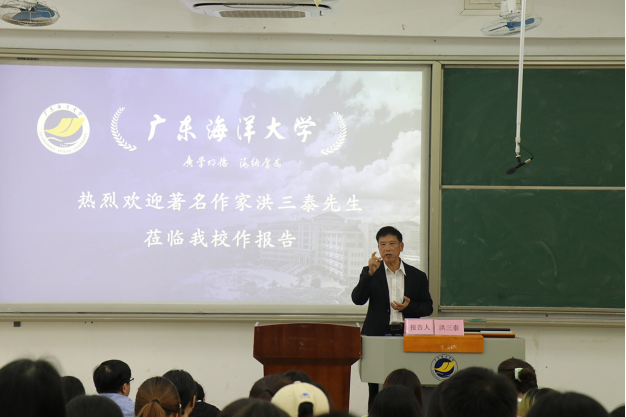 11月19日下午,著名作家洪三泰先生应邀在湖光校区钟海楼04022室为yl6809永利师生作了一场题为《岭南文化和我的文学道路》的学术报告,公司党委副书记林晓敏、yl6809永利经理孙长军和140多名师生聆听了本次报告,报告会由yl6809永利副经理邓建主持。