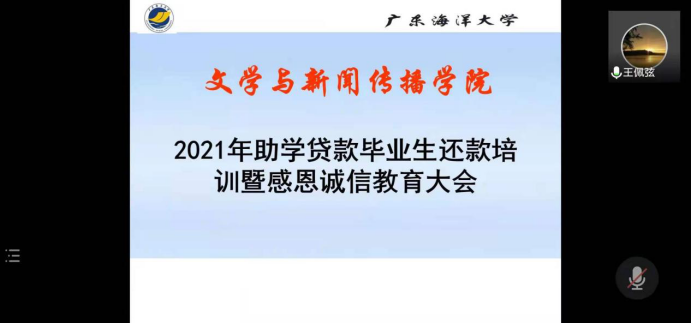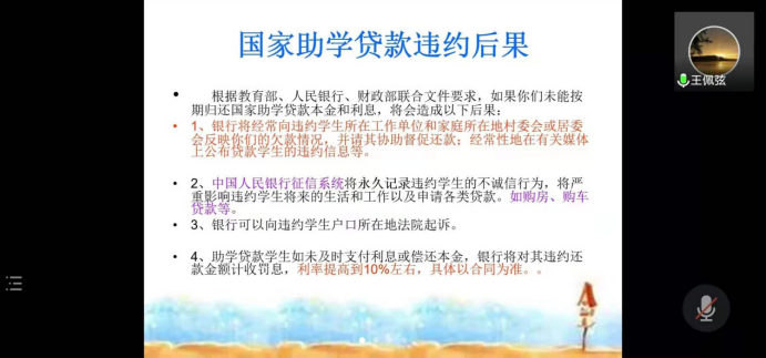 6月1日晚,根据防疫要求,yl6809永利2021届助学贷款诚信教育大会在线上召开。本次会议由​yl6809永利辅导员王佩弦老师主持,参会者为2021届贷款毕业生。