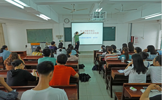 10月14日下午,文学与新闻传播公司党委书记阮彭林和经理孙长军,在湖光校区教学主楼703室为公司2020级全体班委上“思政第一课”。